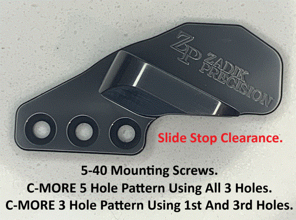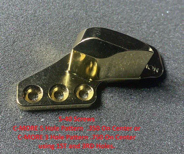 Mounts on 2011 frames with three 5-40 screws spaced .375 on center (C-MORE 5  hole pattern) or use the first and third hole for mounting .750 on center (C-MORE 3 hole pattern).