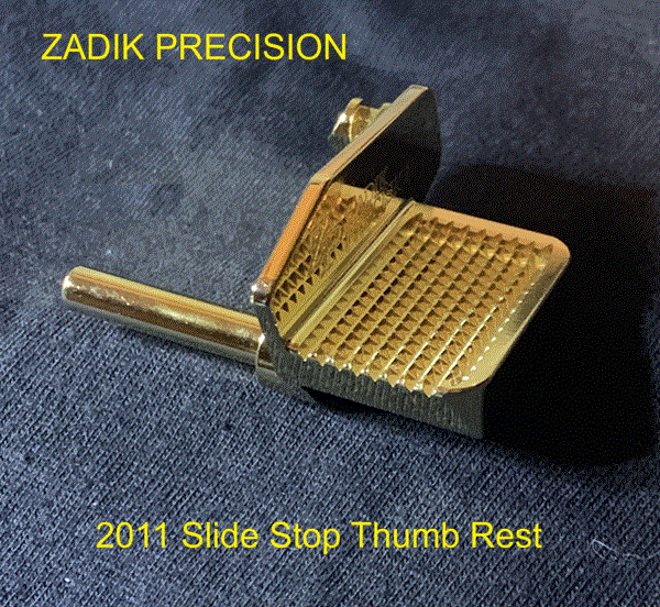 2011 Slide Stop Thumb Rest with 24 K GOLD Hard Coat Finish and NON-SLIP Stippling, Wide Full Thumb Paddle from Zadikprecision.com